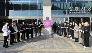 강원 강릉시(시장 김홍규)가 1일 시청 1층 정문에서 여성친화도시 현판 제막식을 개최하고 시민과 함께 안전하고 평등한 도시 실현을 위한 본격적인 행보에 나섰다.이날 제막식에는 김홍규 강릉시장, 최익순 강릉시의회 의장, 이우임 (사)강릉시여성단체협의회장, 구선미 솔향강릉