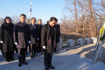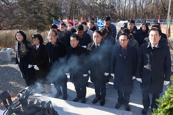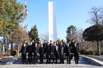삼척시의회(의장 권정복)가 2일 남양동 충혼탑을 방문·참배하며 새해 첫 의정활동을 시작했다. 이날 의장과 의원들은 순국선열과 호국영령들의 고귀한 정신을 기리며 헌화와 분향을 진행하고, 시민들의 건강과 지역발전을 기원했다.이어 의회 세미나실에서 2026년 시무식을 열고