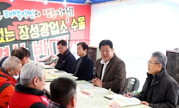 강원 태백시(시장 이상호)가 4일 장성광업소 수몰 반대를 위한 장성광업소 수몰 반대 투쟁위원회를 비롯한 지역사회와 소통, 협력에 최선을 다하겠다고 밝혔다.이상호 태백시장은 지난 3일 장성광업소 수몰 반대 투쟁위원회 야외 투쟁 본부를 찾아 "한파에도 태백의 역사이자 대한
