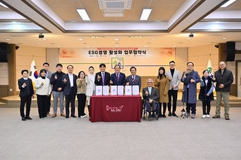 강원 속초시가 ESG 경영 협력 모델 구축지원에 나서며 기업과 사회가 함께하는 지속 가능한 상생 환경 조성을 본격화한다.속초시(시장 이병선)가 11일 시청 대회의실에서 관내 해양심층수 전문기업 ㈜글로벌심층수(대표 김진규), 장애인기업 라이프바이최승원㈜(대표 최승원)과