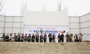강원 횡성군(군수 김명기)이 18일 농업기술센터 내 옛 테니스장 부지에서 '친환경농업관리센터 구축사업 건축공사' 착공식을 개최하고 친환경농업 기반 구축과 과학영농 분석 역량 강화를 위한 사업 추진에 나선다.이날 착공식에는 김명기 군수를 비롯해 군의원, 농업인학습단체,