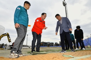 이병선 속초시장이 9일 도로정비 현장을 찾아 주요 진행 상황을 직접 점검했다.시는 시민 일상과 밀접한 생활 교통·보행 환경 개선을 위해 27억 원을 투입, 9개 도로에 대한 정비를 진행하고 있다.시는 이미 청호동 수협 맞은편 우회전 차로, 속초시민약국 앞 가속차로, 겨