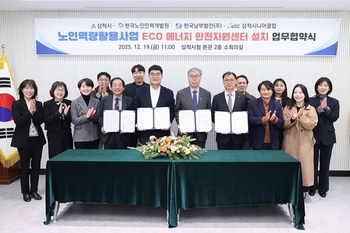 강원 삼척시(시장 박상수)가 19일 한국노인인력개발원, 한국남부발전(주) 삼척빛드림본부, 삼척시니어클럽과 함께 신규 어르신 일자리 창출사업으로 'Eco에너지 안전지원센터' 운영을 위한 업무협약을 체결했다.이번 협약은 관내 가정 태양광 패널 세척 작업을 통해 친환경에너지