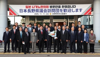 일본 나가노현의회 대표단이 11일 강원특별자치도의회를 공식 방문해 상호 우호 증진과 실질적인 교류·협력 강화 방안을 논의했다.강원특별자치도의회(의장 김시성)는 일본 나가노현의회 요다 메이젠(依田明善) 의장을 비롯한 대표단 16명(의원 11명, 재일본대한민국민단 3명,