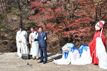 청태·태기산생태관광지역협의체에서 생태관광지역활성화사업의 일환으로 추진되는 태기산 산신제가 29일 둔내면 삽교1리 서낭당에서 열렸다.태기산 산신제는 삽교1리 주민들이 매년 음력 9월 9일 자연의 은혜에 감사하고 마을의 평안을 기원하기 위해 지내는 전통 의례이다. 올해는