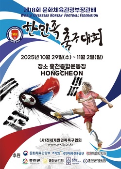 강원 홍천군(군수 신영재)이 '제18회 문화체육관광부 장관배 2025년 전 세계 한민족 축구대회'가 오는 29일부터 내달 2일까지 5일간 홍천종합체육관에서 개최된다고 29일 밝혔다.이번 대회는 지난해에 이어 2년 연속으로 홍천군에서 열리는 대회로, 미국·일본·싱가포르
