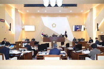 삼척시의회(의장 권정복)가 28일 제269회 삼척시의회 임시회 제5차 본회의를 개의해 경제과 등 6개 부서로부터 '2026년도 시정 주요 업무계획'에 대한 보고를 받았다.이날 김희창 의원은 전통시장 환경 정비와 삼척사랑카드 인센티브 확대 등 다양한 방안을 통해 전통시장