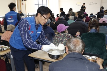 한국도로공사 강원본부가 10일 밥상공동체 식당에서 지역 어르신 150분을 대상으로 '사랑의 무료 배식 봉사'를 진행했다. 지난달에 이어 두 번째 행사다.이날 현장에서는 식사뿐만 아니라 고령 어르신들의 영양 불균형 해소를 위해 후식으로 '두유'를 전달했다. 이번