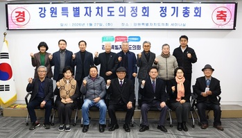 강원특별자치도의정회가 27일 도의회 세미나실에서 2026년도 정기총회를 개최했다. 이날 정기총회를 진행한 가운데 의정회원들이 강원특별법 3차 개정안 심사와 통과 촉구 결의문 낭독과 함께 피켓 퍼포먼즈로 강원특별자치도의 제도적 기반 강화를 위한 의지를 한데 모았다.이번