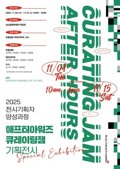 미래 큐레이터를 꿈꾸는 젊은 기획자들이 땀과 열정으로 준비한 결과물을 대중들 앞에 처음으로 선보이는 자리가 마련된다. 원주문화재단은 올해 지역문화전문인력 전시기획자 양성과정 일환으로 운영한 '애프터아워즈 큐레이팅잼' 수료생들의 기획전시가 내달 4일부터 15일까