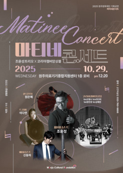 바쁜 일상 속 쉼표가 되어줄 특별하면서도 부담없는 클래식 무대가 찾아온다. 원주문화재단(대표이사: 박창호)이 오는 29일 낮 12시 20분 원주의료기기종합지원센터 로비에서 기획공연 '마티네 콘서트 Ⅳ'를 개최한다. 지난 7월 시청 로비에서 첫선을 보인 이후 네