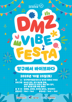 강원관광재단(대표이사 최성현)이 강원특별자치도, 양구군과 함께 오는 25일 양구군 백자박물관 잔디마당에서 '디엠지 감성 축제(DMZ VIBE FESTA) 양구에서 바이브하다'를 개최한다고 15일 밝혔다.'2025-2026 강원 방문의 해'와 연계한 이번 축제는 화천에