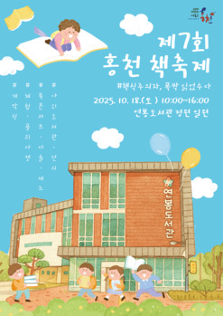 강원 홍천군(군수 신영재)이 오는 18일 오전 10시부터 오후 4시까지 연봉도서관 정원에서 '제7회 홍천 책축제(슬로건: 책식주의자, 폭싹 읽었수다)'를 개최한다.군은 홍천군청소년오케스트라의 식전공연, 개막식, 책·독서 관련 체험 '책팡', 플리마켓 '마켓 책플레이스'