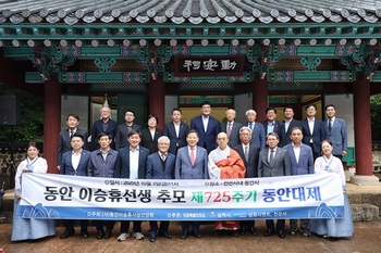 고려 후기의 문신이자 사상가인 동안 이승휴 선생을 추모하기 위한 '제725주기 동안대제'가 지난 3일 오전 11시 천은사 내 동안사에서 봉행됐다.대제는 천은사 범종 33회 타종을 시작으로 삼귀의와 반야심경 봉독, 헌향·헌다·헌화, 행장 소개, 추모사, 축사, '제왕운기