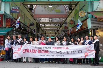 강원특별자치도교육청(교육감 신경호)이 2일 추석 명절을 앞두고 지역 경제 활성화와 청렴문화 확산을 위해 전통시장을 방문하고 더불어 이웃과 정을 나누기 위해 사회복지시설을 찾아 위문품을 전달했다.이날 교육감을 비롯한 도교육청 간부 직원들은 춘천중앙시장과 풍물시장에서 제수