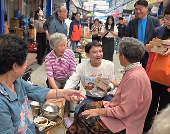 김진태 지사, 추석 명절 앞두고 전통시장 장보기 나서