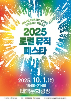 강원도 태백시(시장 이상호)가 제44회 태백제와 연계한 지역예술인 특별공연 '2025 로컬 뮤직 페스타'를 내달 1일 오후 3시부터 9시까지 태백문화광장에서 개최한다고 19일 밝혔다.이번 공연은 지역 예술인의 발굴과 성장 지원을 목표로 기획됐으며 가수 ·댄스·밴드·악기