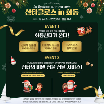 춘천 화동 2571에서 크리스마스 특별 이벤트가 펼쳐진다.춘천 먹거리 복합문화공간 '화동 2571'이 성탄절을 맞아 오는 24~25일 이틀간 크리스마스 특별 이벤트 '산타클로스 in 화동'을 연다.이번 행사는 '낭만 가득한 겨울'을 주제로 가족과 연인이 함께 미식과 즐