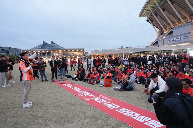 이날 김진태 강원특별자치도지사, 김시성 도의장을 비롯한 도 대표단, 강원FC 팬, 히로시마 총영사관, 히로시마 청소년과 교민 등으로 구성된 '강원이 나르샤 응원단'은 원정석 500석을 가득 채우며 선수단을 향한 열띤 응원을 펼쳤다. -