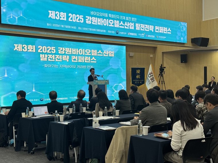 강원특별자치도(도지사 김진태)가 지난 11일 춘천ICT벤처센터 대회의실에서 '제3회 2025 강원 바이오헬스산업 발전전략 컨퍼런스'를 개최했다.