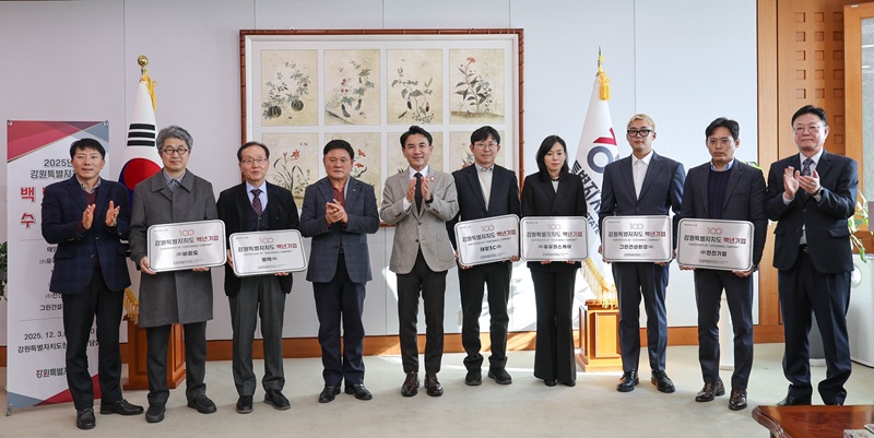 강원특별자치도(도지사 김진태)가 업력 20년 이상인 장수기업 가운데 견실한 경영 능력과 미래 성장 잠재력을 갖춘 '강원형 대표기업' 6개 사를 '2025년 강원특별자치도 백년기업'으로 최종 선정하고, 3일 도청 통상상담실에서 인증서를 전달했다.