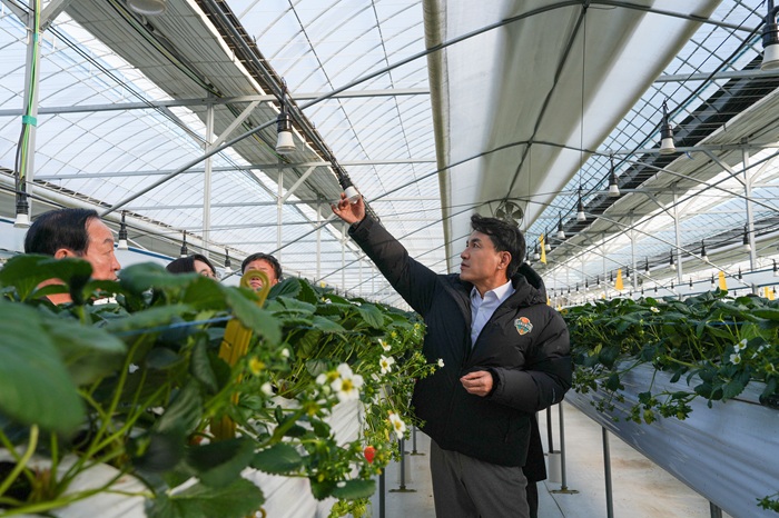 이날 현장에는 김진태 강원특별자치도지사를 비롯해 한기호 국회의원(춘천철원화천양구을), 딸기 등 시설원예 재배 농업인들이 함께했으며, 시설 보온 상태와 작물 생육 상황 등을 점검했다.