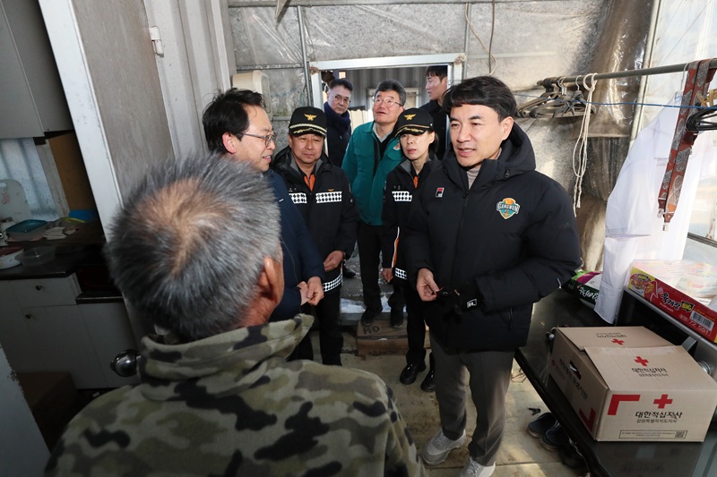 김진태 강원특별자치도지사가 지난 13일 밤부터 도내 한파주의보가 발효될 전망에 따라 춘천시 신동면에 위치한 비주택 주거지를 방문해 주거환경 취약계층의 겨울철 안전대책을 점검했다.