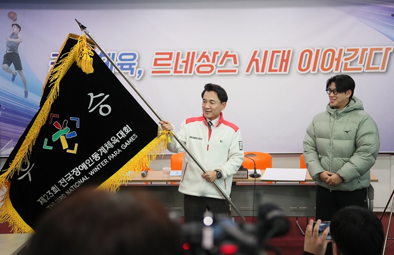 강원특별자치도(도지사 김진태)가 3일 강원체육 르네상스 시대를 이어가기 위한 '2026 강원체육 비전'을 발표했다. 이 자리에서는 1월 27일부터 30일까지 나흘 간 강원 일원에서 열린 제23회 전국장애인동계체전 우승 트로피와 우승기 전달식도 함께 진행됐다.