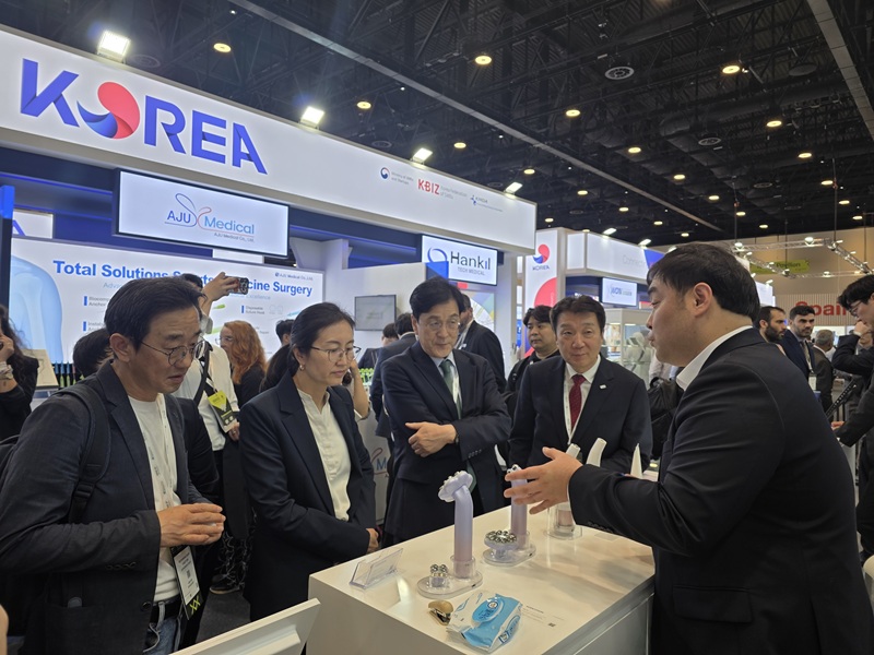 도내 23개사가 참가한 '강원공동관'에는 개장 직후부터 UAE, 사우디아라비아, 이집트 등 중동 주요국에서 온 바이어들이 찾아와, 강원 기업들이 선보인 AI 진단 솔루션, 초음파 미용기기, 디지털 치료기기 등에 높은 관심을 보였다.