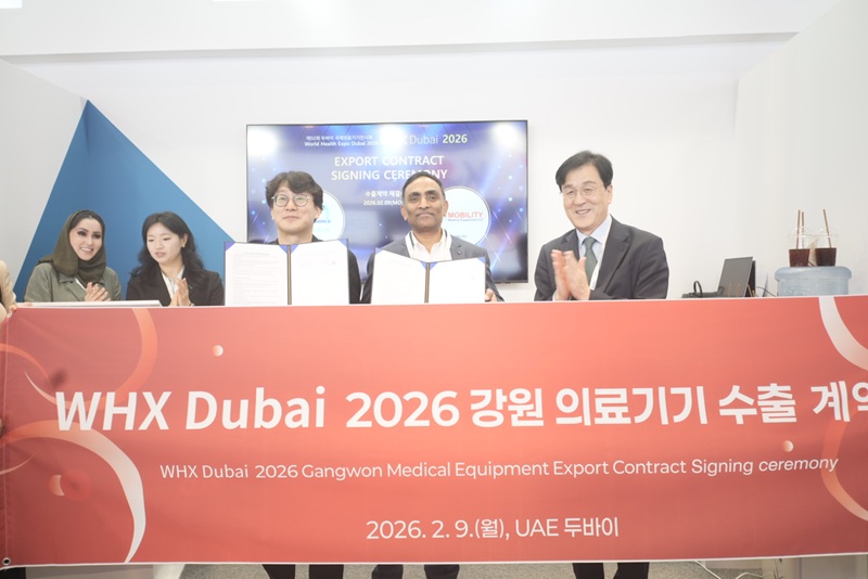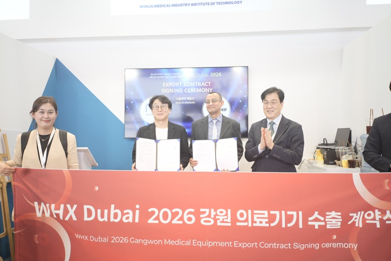 강원 의료기기가 '두바이 월드헬스 엑스포 2026(WHX Dubai 2026)' 현장에서 첫날부터 수출 계약 성과를 거두며 뜨거운 반응을 얻고 있다.